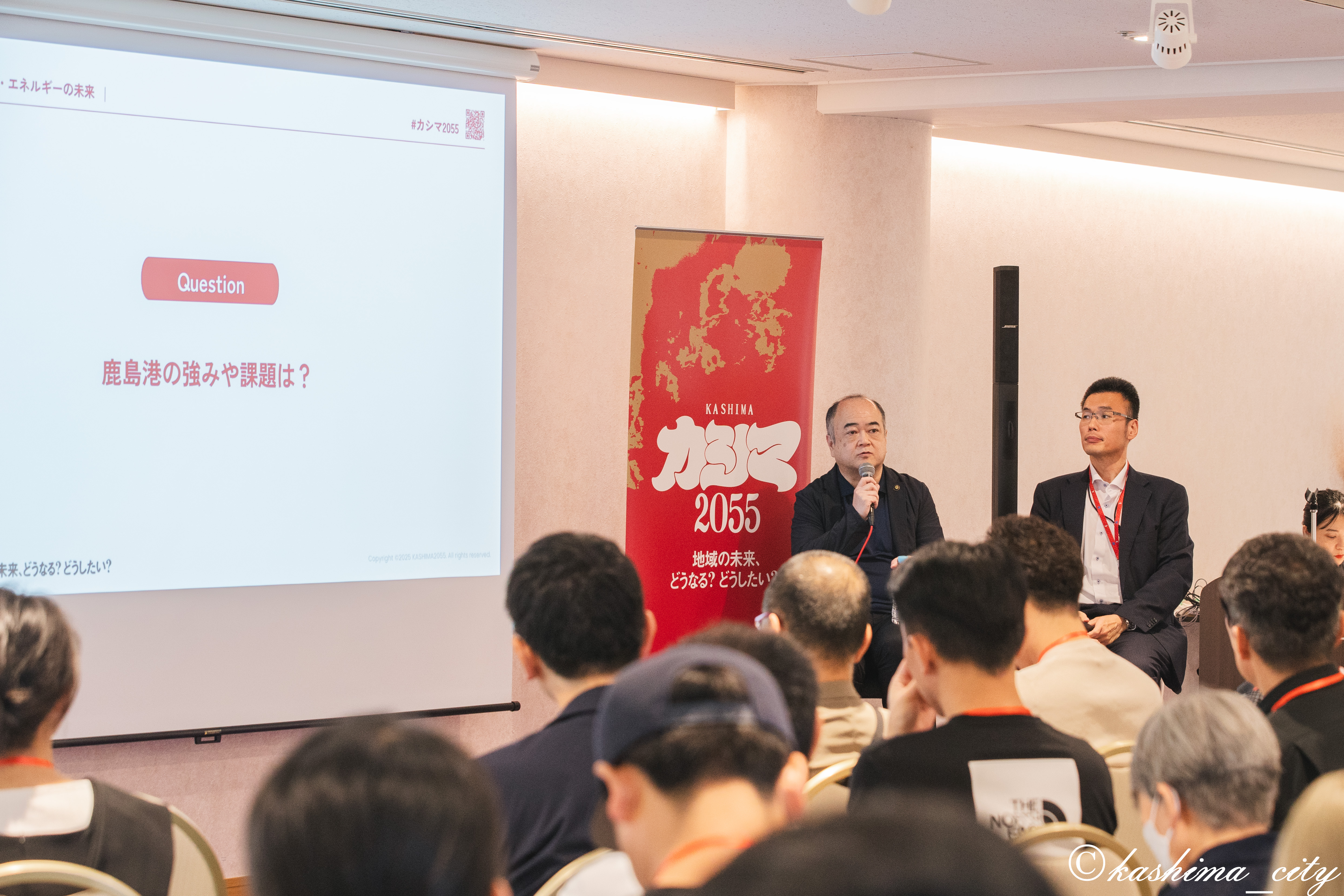 「鹿島港の進化と工業・エネルギーの未来」には田口 伸一市長が登壇し、オクトパスエナジー株式会社CEO 中村 肇氏、茨城県土木部港湾振興監 山口 隼人氏、株式会社鹿島アントラーズFC代表取締役社長 小泉 文明氏らとともに、鹿島港を取り巻く時代の変化や鹿島港を中心とした地域の強み、カーボンニュートラル社会の実現に向けた鹿島港の役割などについて意見が交わされました。