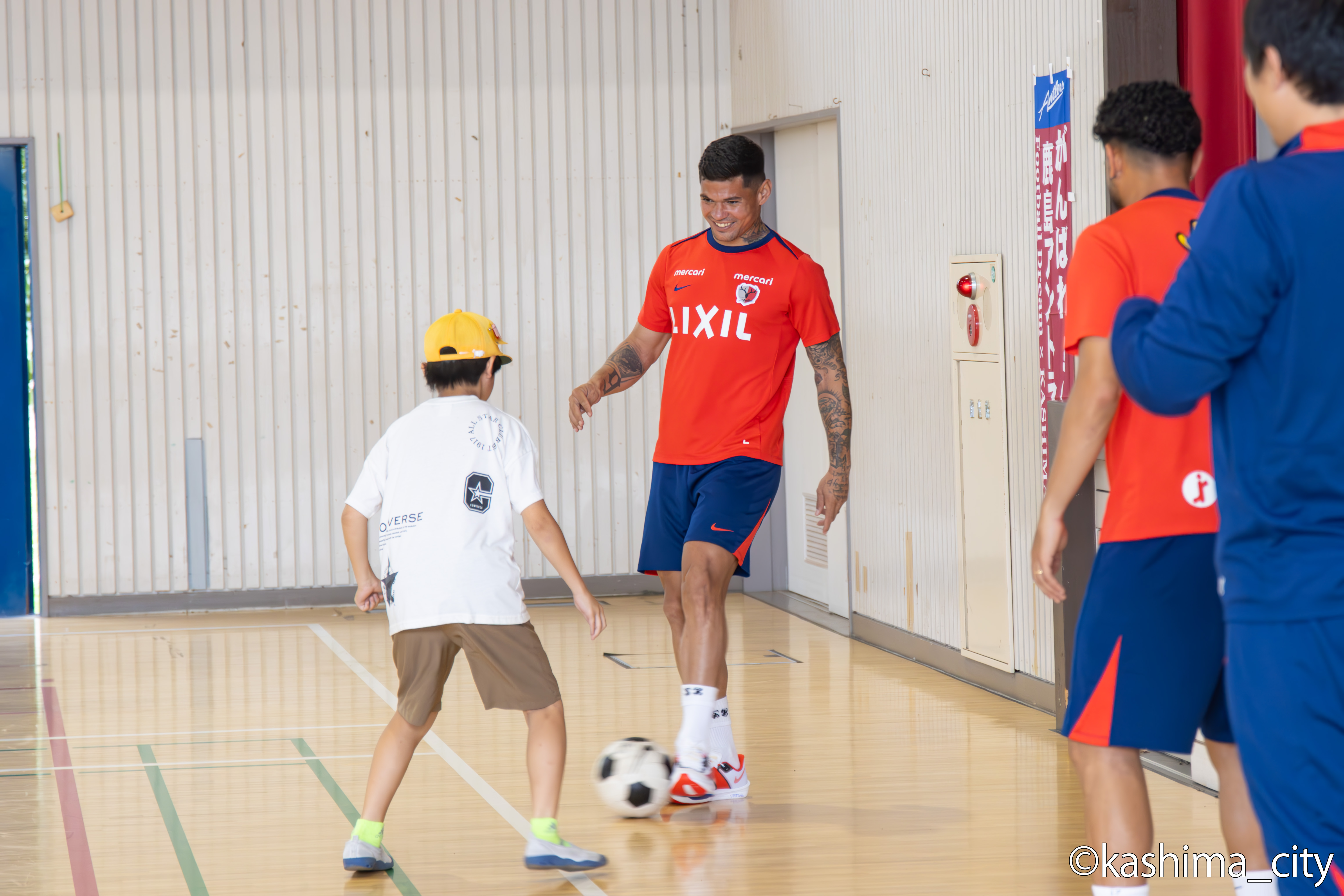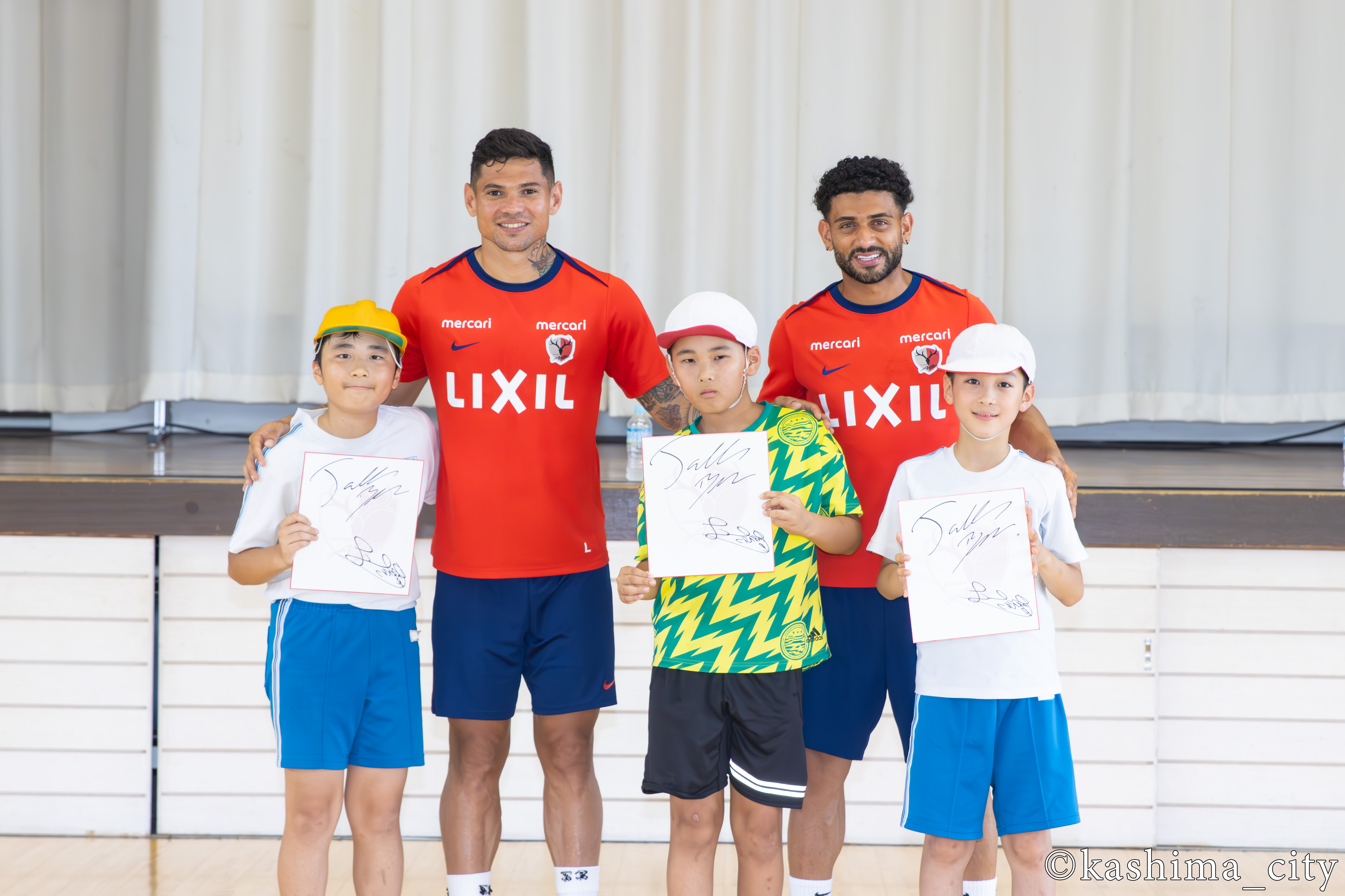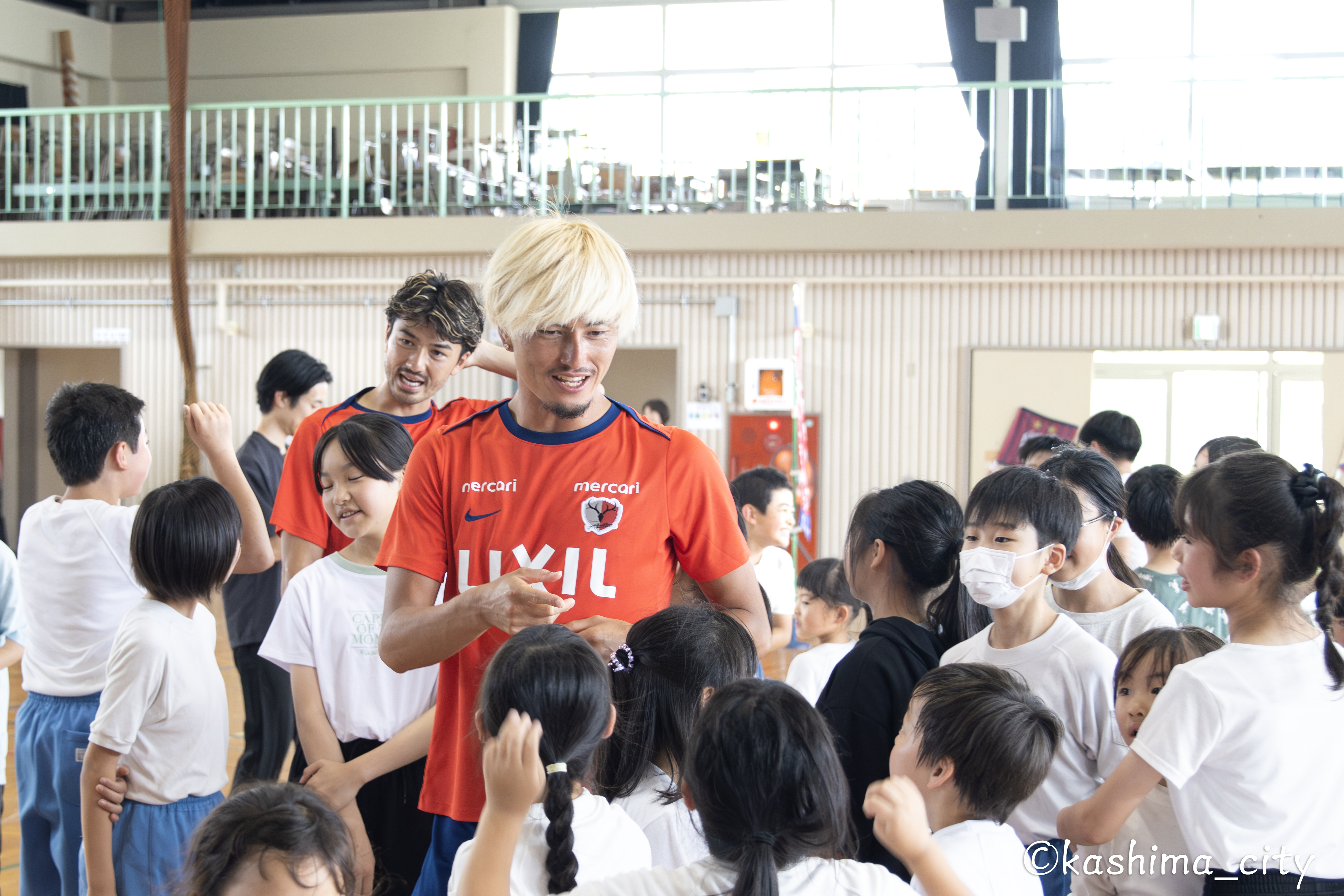 6月24日、25日に鹿島アントラーズの選手による小学校訪問が行われ、24日に鈴木 優磨 選手(40番・FW)と千田 海人 選手(4番・DF)が中野西小学校(錦織 百代校長)を訪れ、25日にレオ セアラ 選手(9番・FW)とターレス ブレーネル 選手(17番・MF)が大同西小学校(小野木 清倫校長)を訪れました。