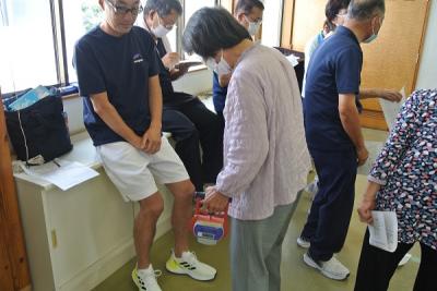 参加者は28人いましたが、65歳以上の方が25人と圧倒的に多く、しかも80歳以上が10人いました。65歳未満の方は仕事等で都合がつかないこともあるのでしょうが、今の体力を知り、維持あるいは向上していくことが健康寿命を延ばすことにつながりますので、また体力測定を行う時にはぜひ参加してください。