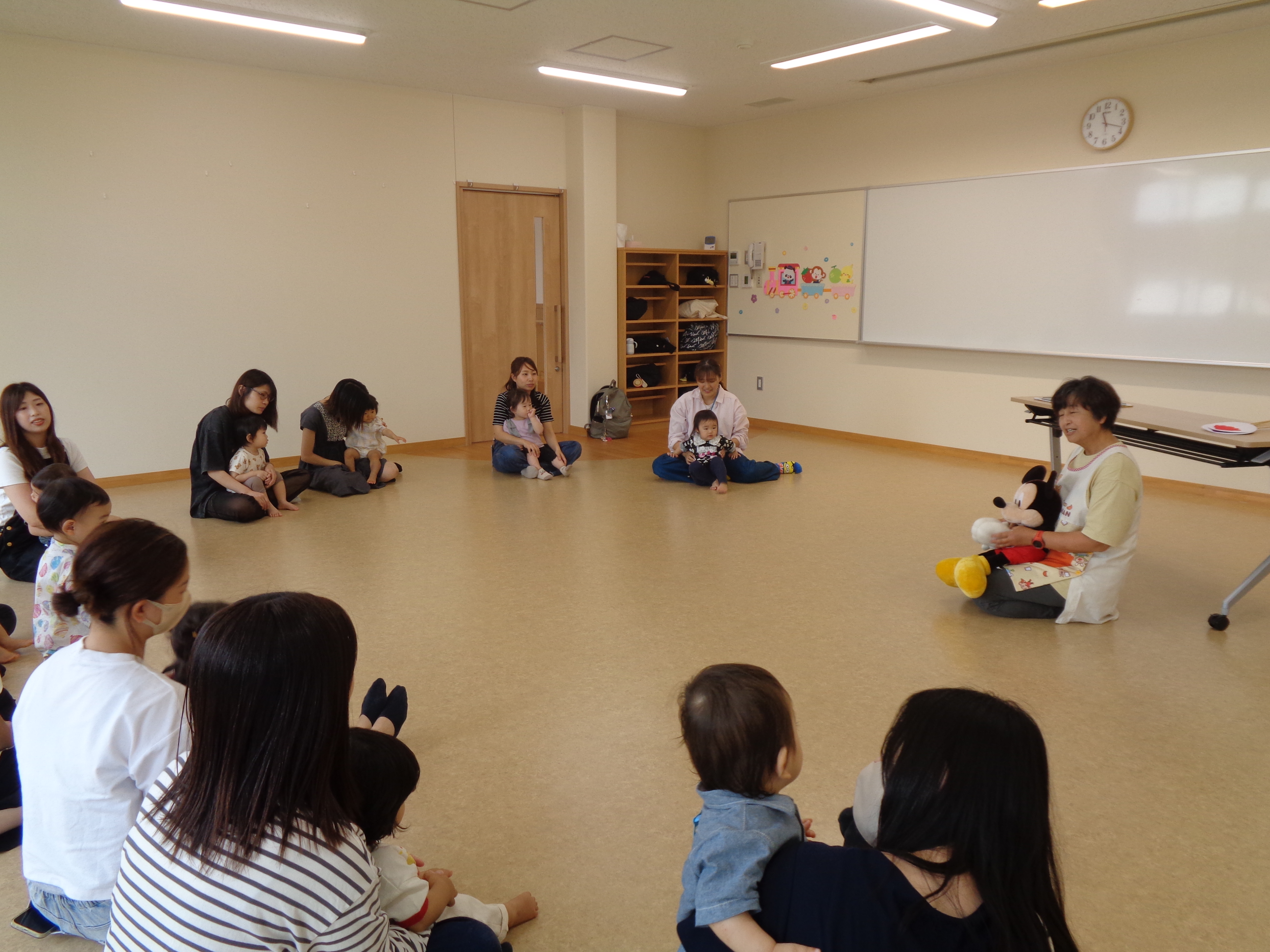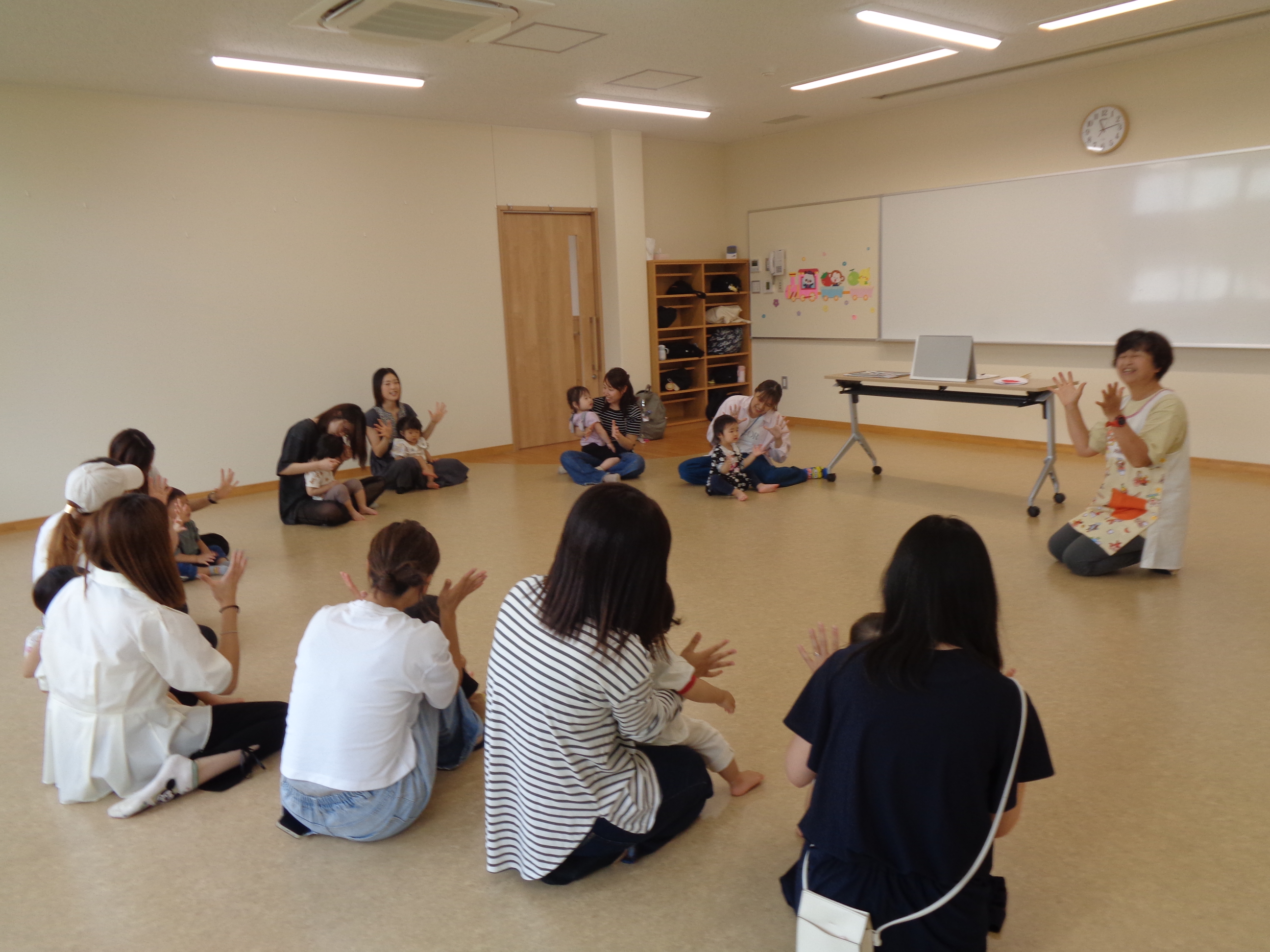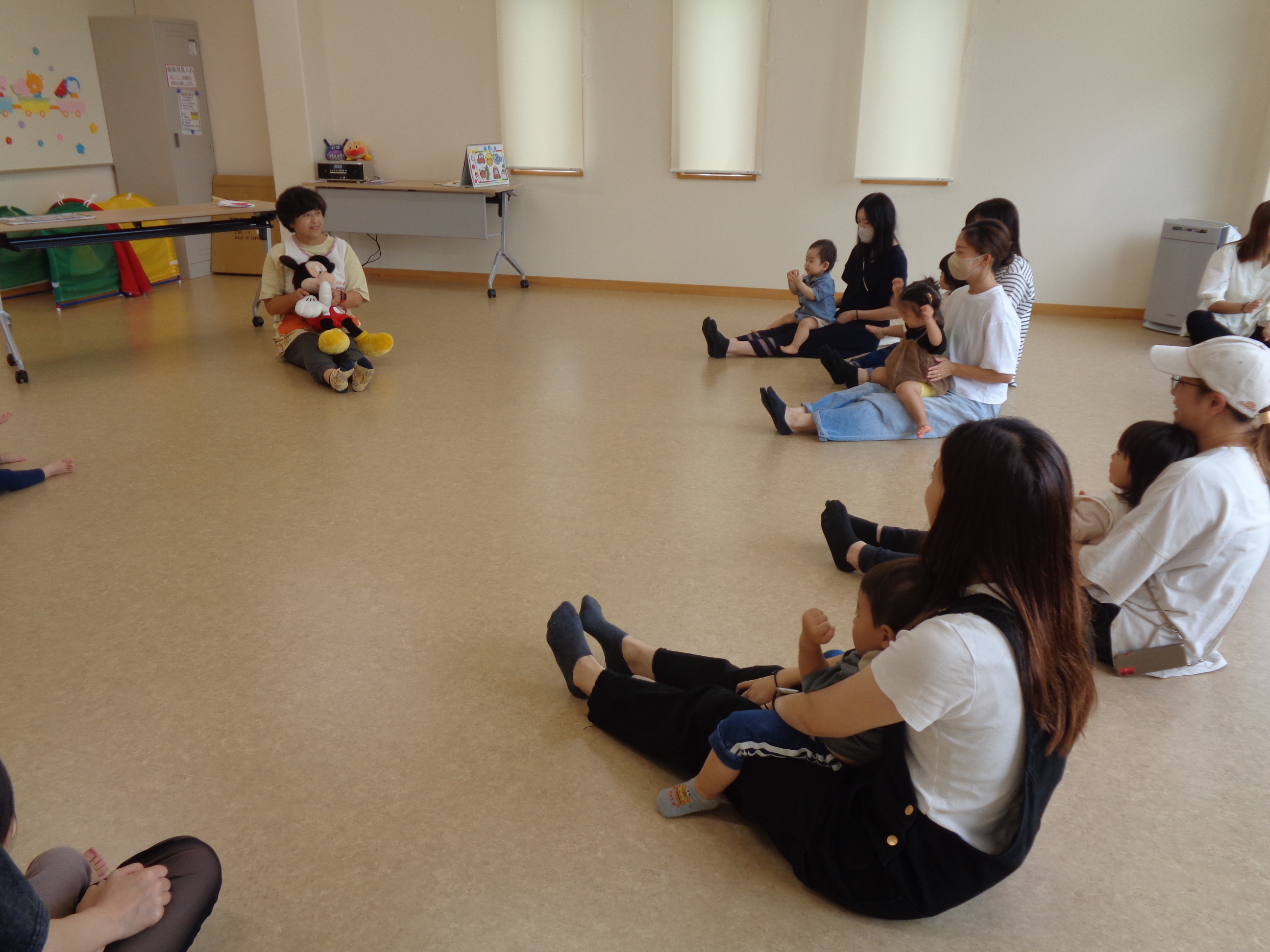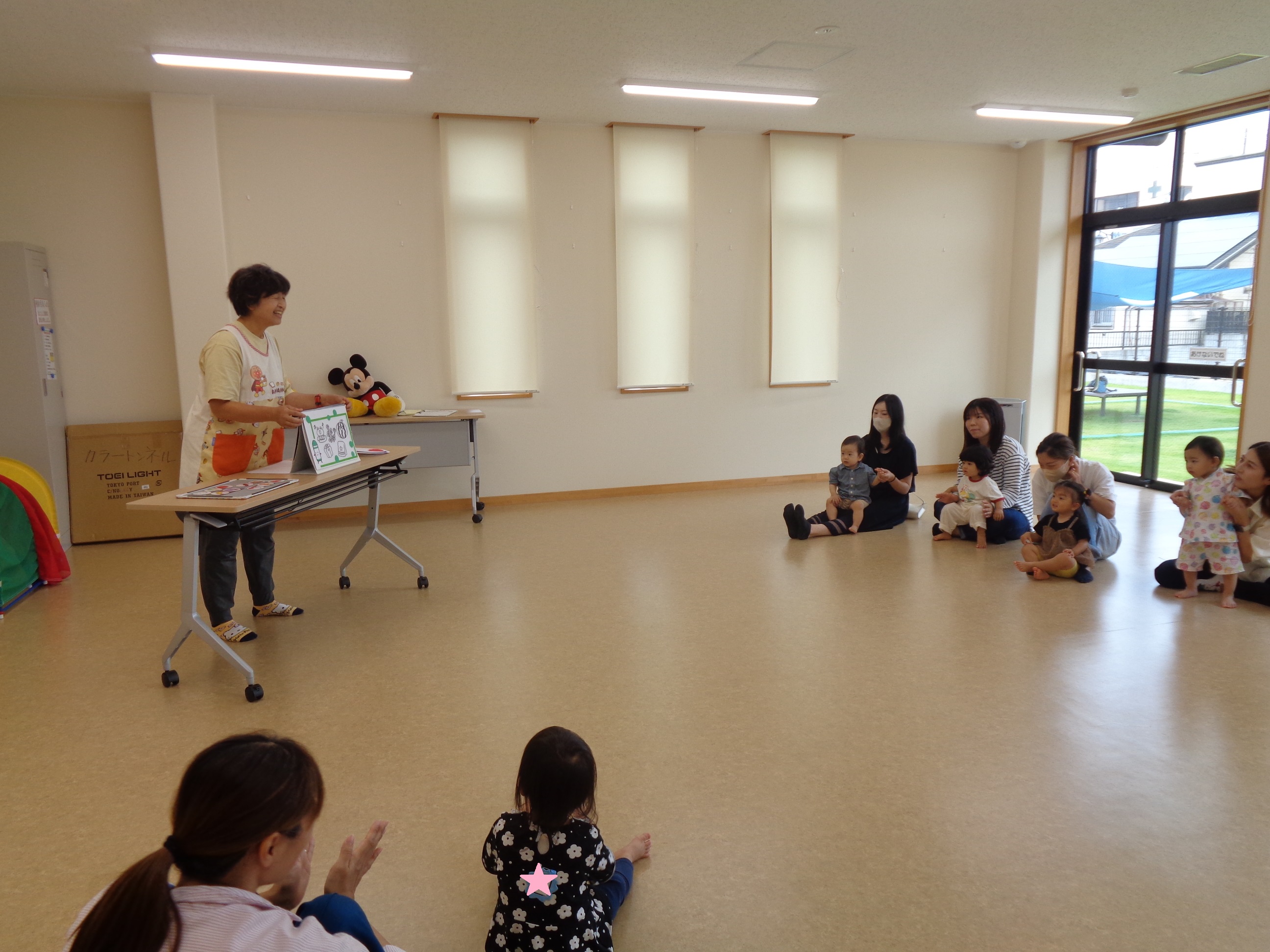 30分程度の時間でしたが、担当の保育士と一緒に手遊び、スケッチブックシアター、親子ふれあい遊び、運動遊び、大型絵本等、盛りだくさんの遊びを行い、最後までみんなニコニコと素敵な笑顔で過ごすことができました。