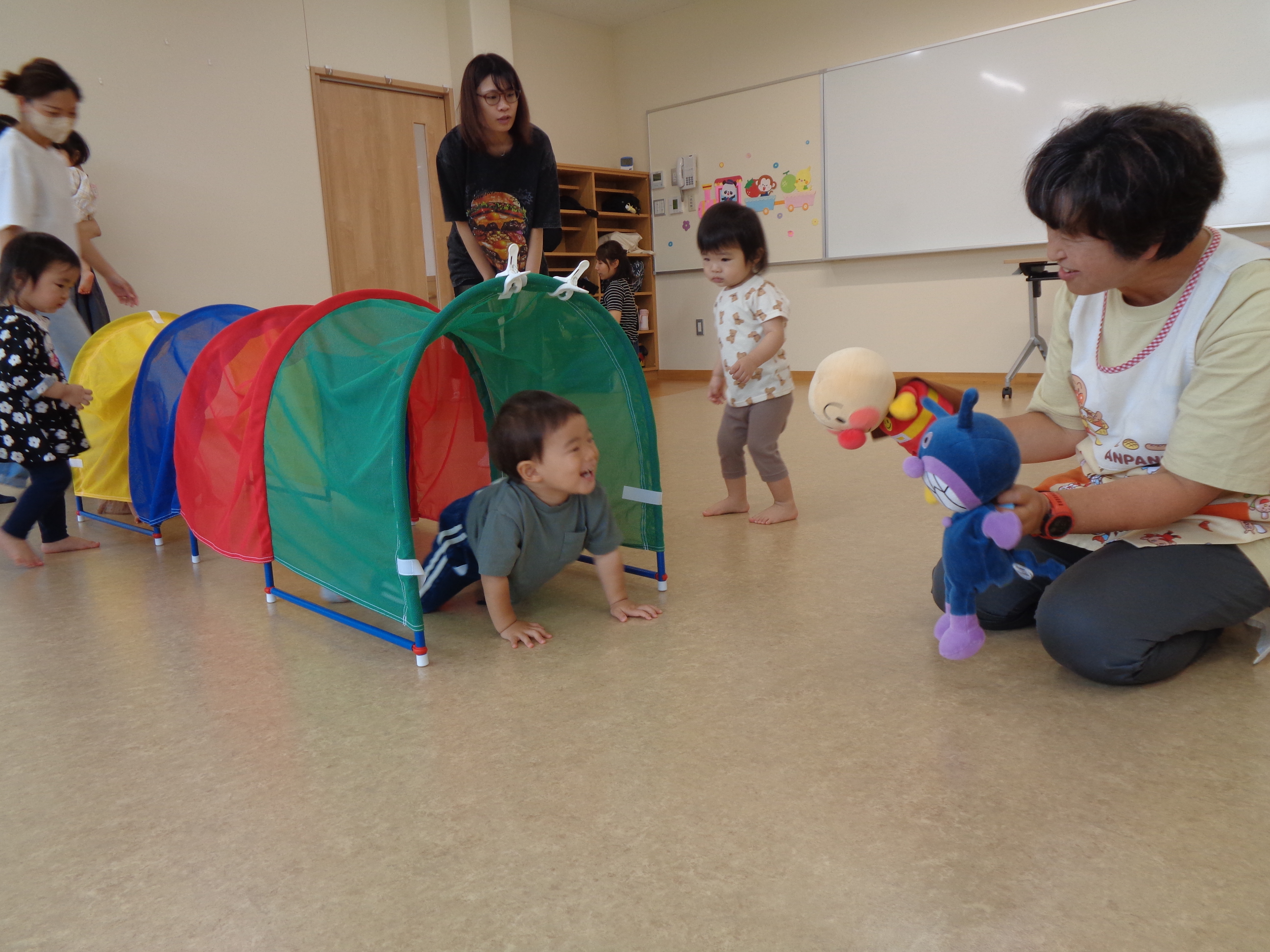 運動遊び ~トンネルくぐって~ アンパンマン、ばいきんまんにタッチしたよ~