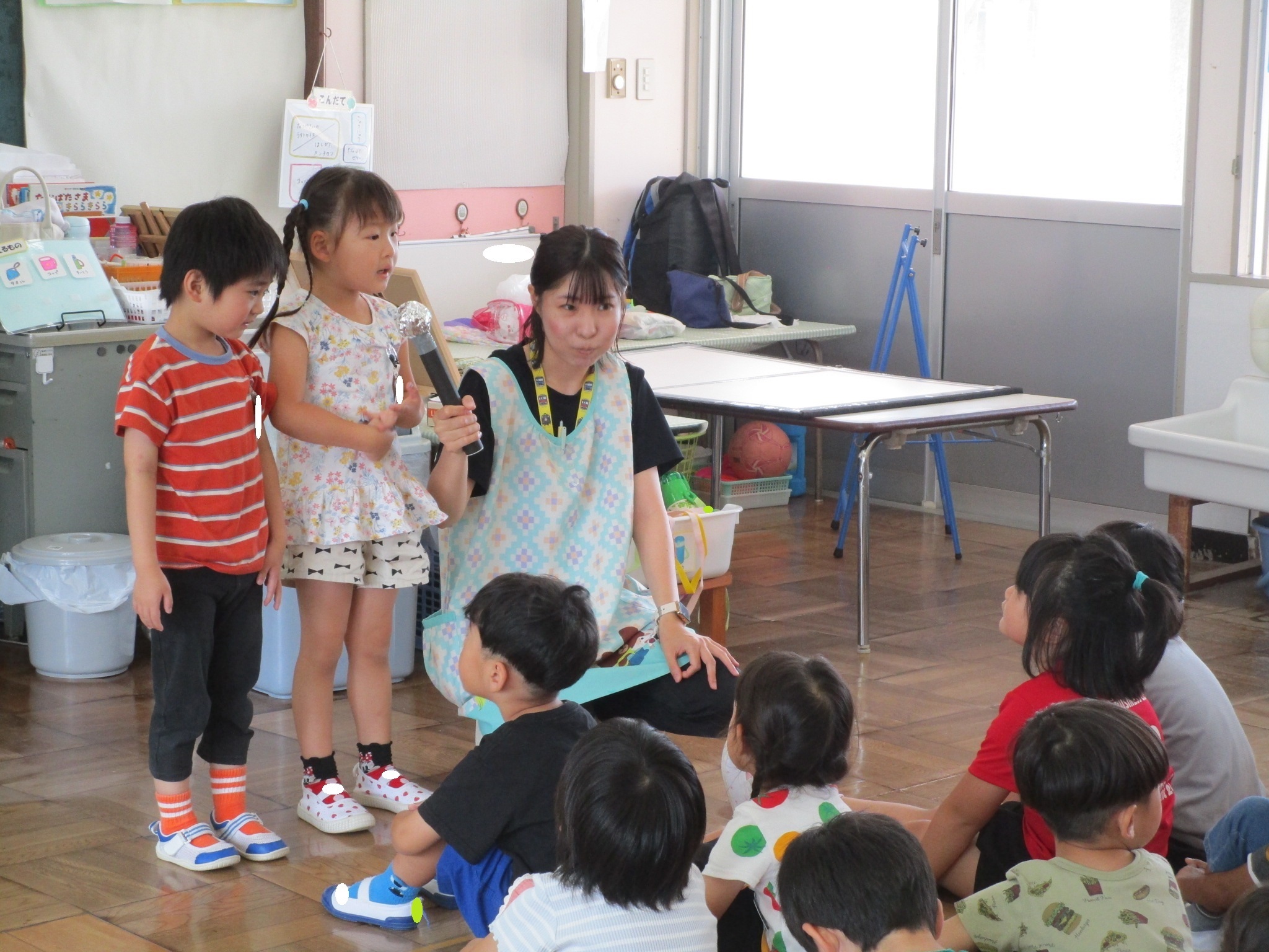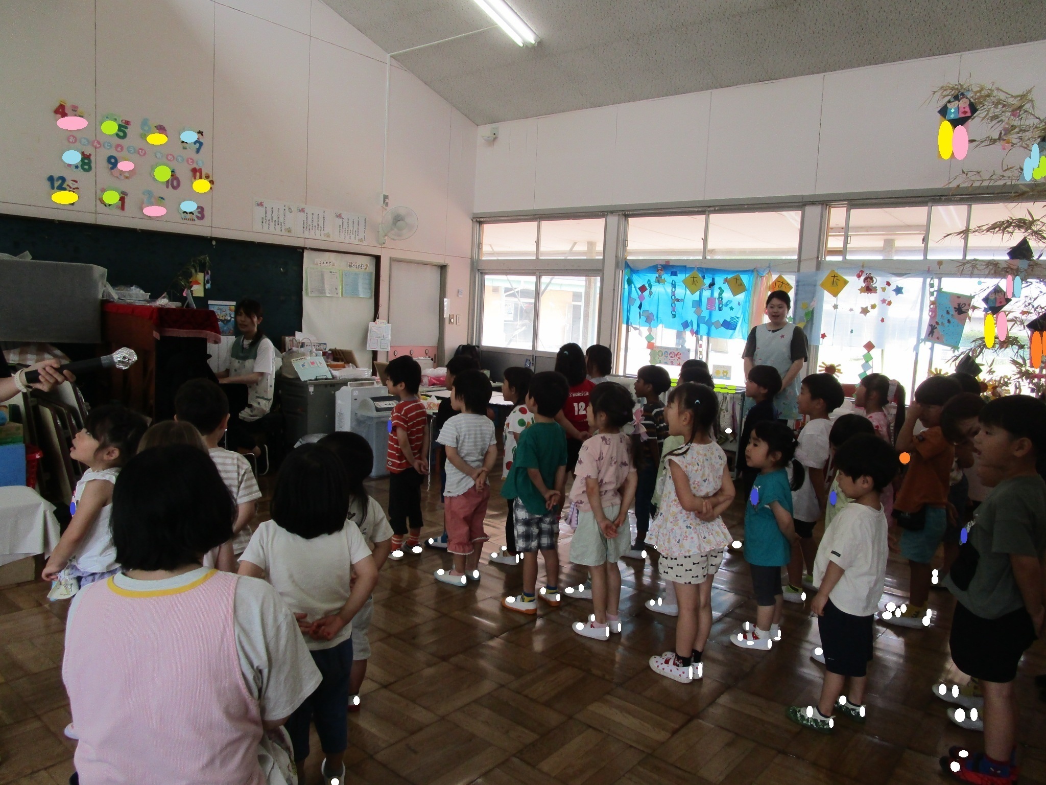 みんなで「たなばたさま」の歌を歌った後、各クラス代表のお友達が願いごとを発表しました。