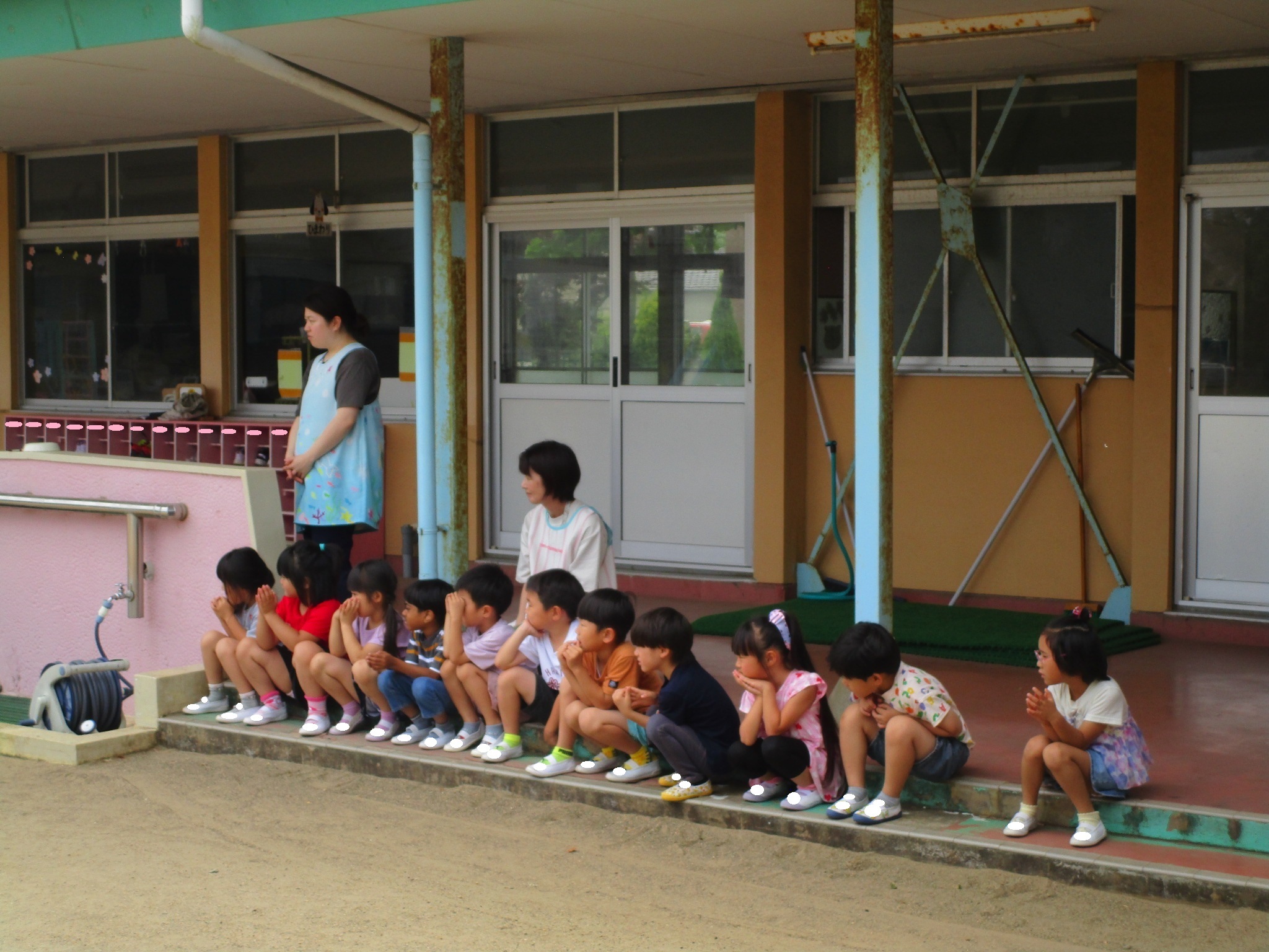 テラスで、みんなの願いごとが叶いますようにとお願いしながら、短冊を燃やす様子を見学しました。