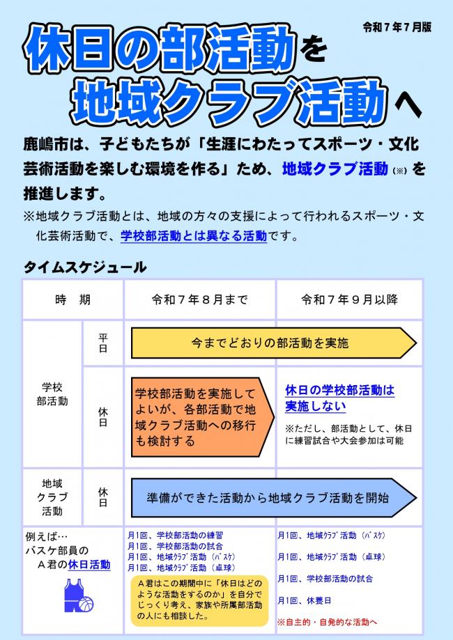 鹿嶋市は、子どもたちが「生涯にわたってスポーツ・文化芸術活動を楽しむ環境を作る」ため、地域クラブ活動(※)を推進します。