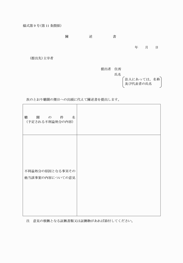 第11条 法第21条第1項,県条例第21条第1項及び市条例第21条第1項の陳述書は,様式第9号によるものとする。