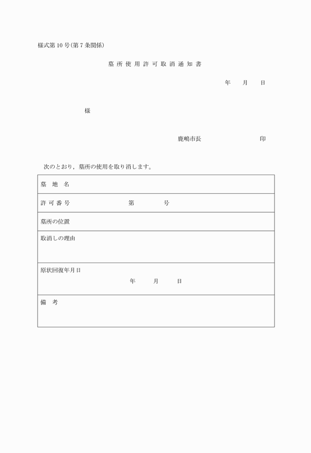 ○鹿嶋市鹿島臨海工業地帯の造成に伴い移転築造された共同墓地の管理及び使用に関する条例施行規則