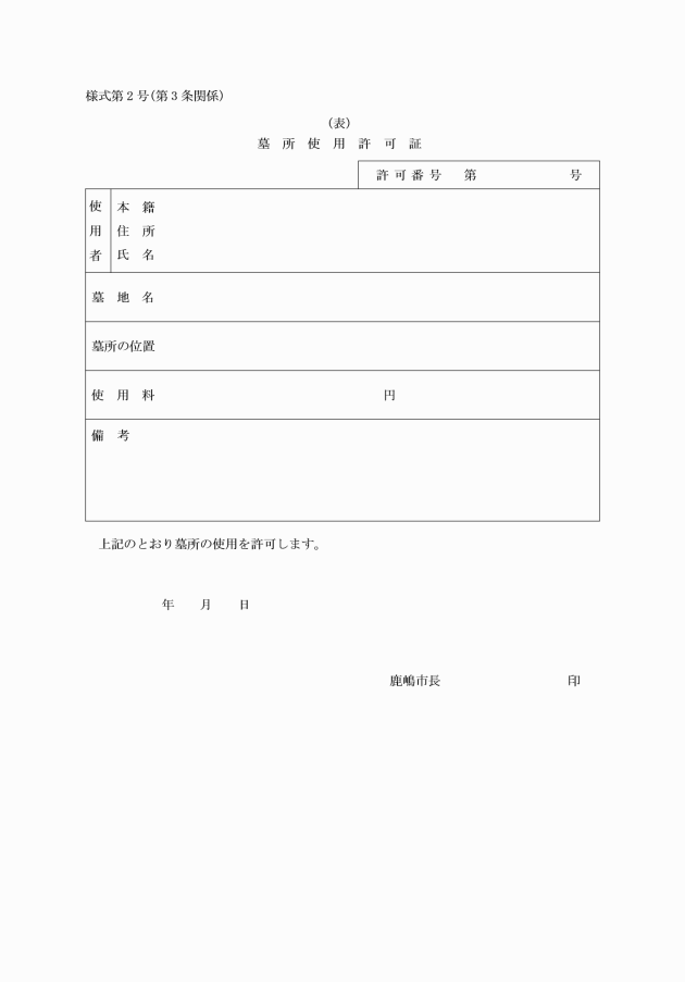 2 前項の届出には,墓所使用許可証を添付するものとする。