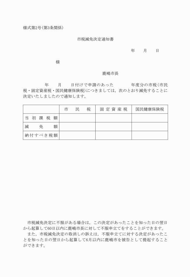 第2条 条例第6条の申請書は,市税減免申請書(様式第1号)とする。