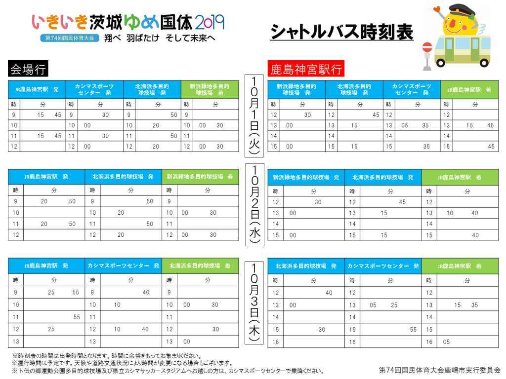 2019/09/05茨城国体サッカー競技開催時のJR鹿島神宮駅~各競技会場へのシャトルバス運行が決定いたしました。