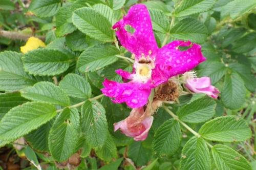 自生南限地帯のハマナスの花が咲きました!既に散っている花もあり、2、3日前から開花していたようです。