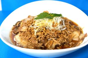 創作そばの種類が豊富なお店です。人気はかしまし豚を使用した「肉そば」です。