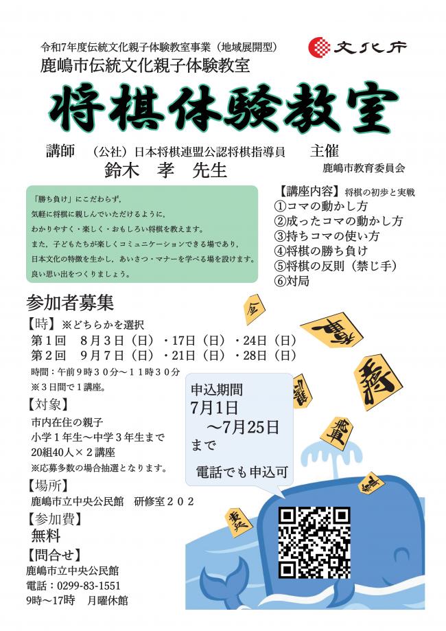 市内在住の親子を対象に、「将棋体験教室」を開催します!
