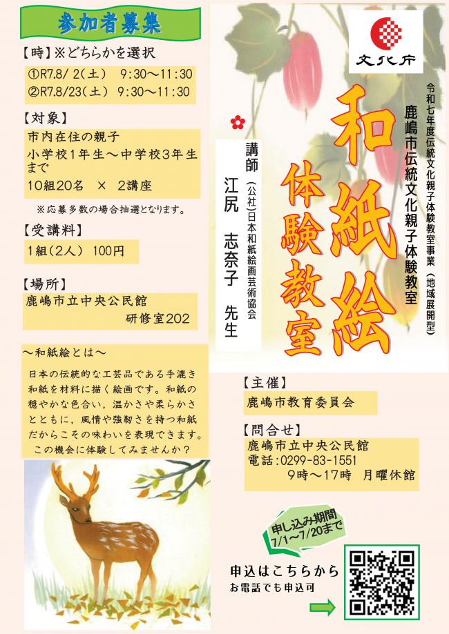 市内在住の親子を対象に、「和紙絵体験教室」を開催します!