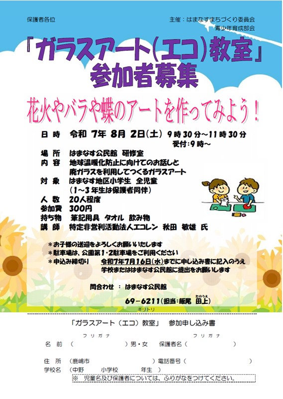 (参加申込書を担任の先生、またははまなす公民館に提出してください)