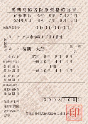 ↑後期高齢者医療制度の「資格確認書」(見本)